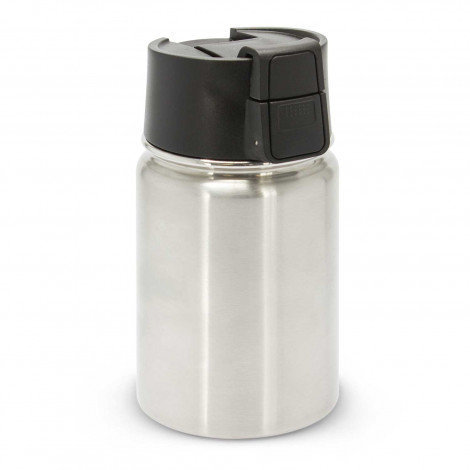 Compact 400ml double wall, vacuum insulated stainless steel cup which will keep drinks hot or cold for hours. It is also ideal for taking soup and food to work or school. It features a secure screw on lid with a push button activated flip closure which is spring-loaded for smooth, effortless operation. It is BPA-free, laser engraves to a natural etch and is presented in a black gift box. This product is not dishwasher safe and handwashing is recommended.