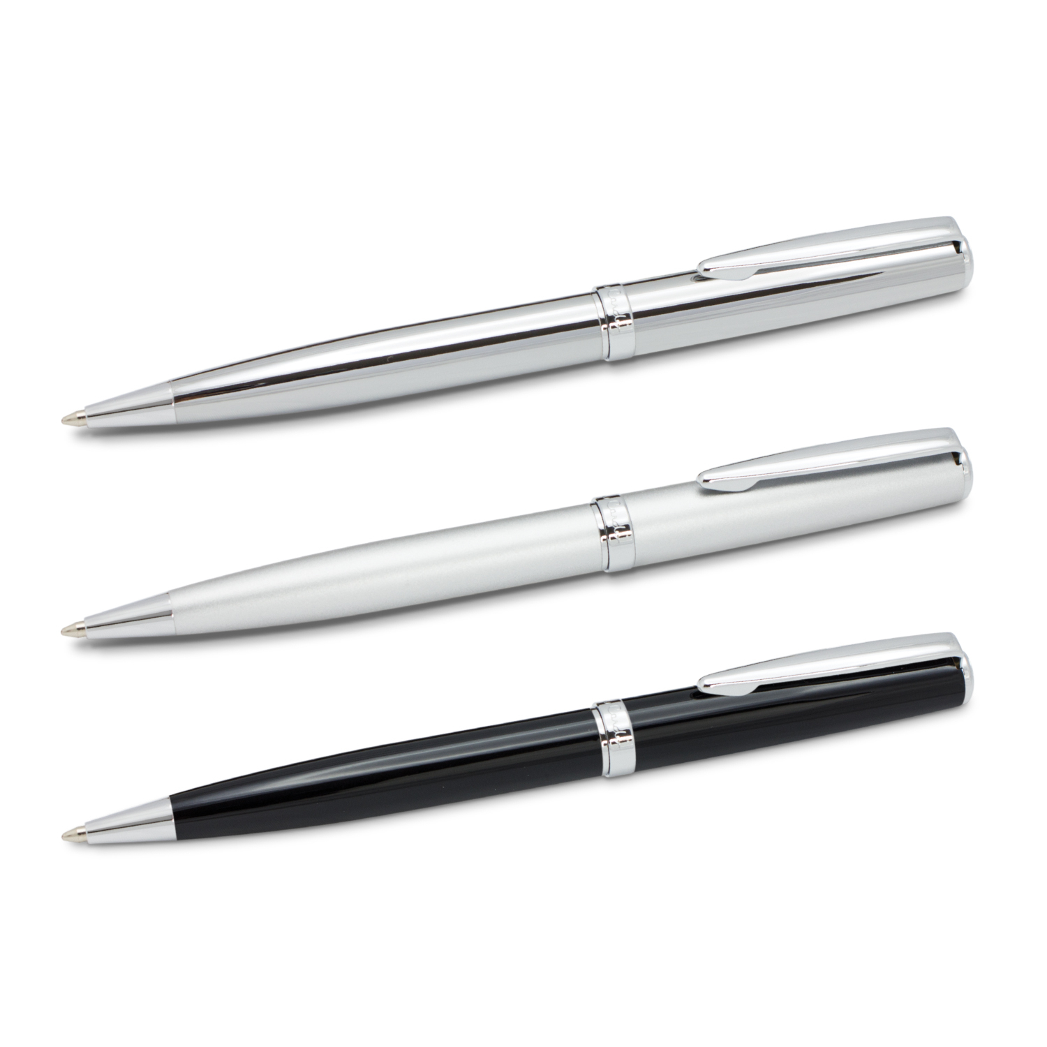 Timeless classically designed brass ball pen with a silky smooth twist action and shiny chrome accents. The barrel is finished in the choice of lacquered black which engraves to a silver mirror finish or electroplated shiny chrome and matt silver which both engrave to a silver natural etch. Calais has a black large volume refill with 4000 metres of German manufactured Dokumental ink and a tungsten carbide ball for improved writing quality. It features the Pierre Cardin logo tastefully engraved on the centre ring and can be presented in an optional Pierre Cardin sleeve or Pierre Cardin gift box.